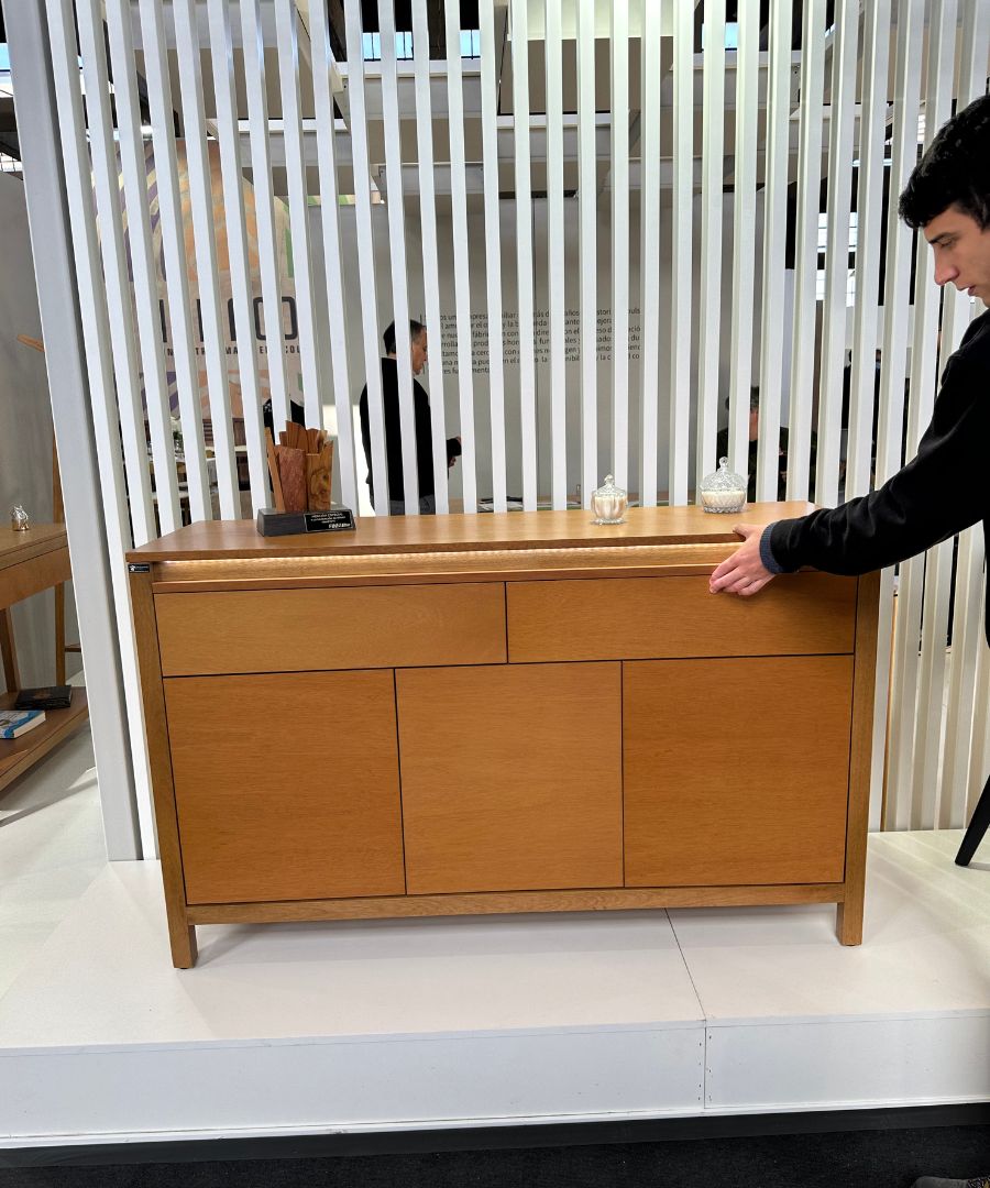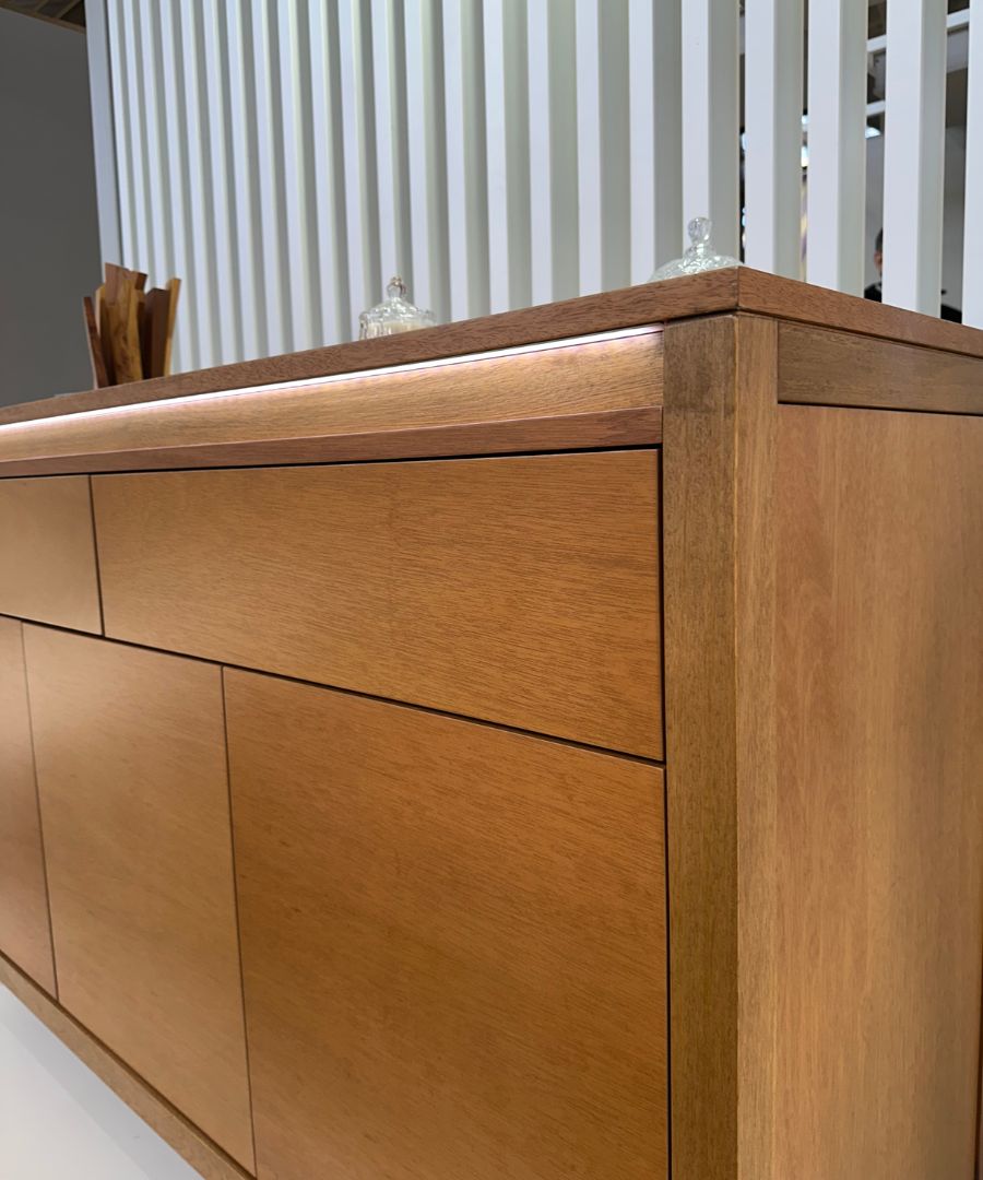 Este bahiut vajillero Moderno es mucho más que un mueble de guardado. Fabricado en Eucaliptus Grandis, incorpora un sistema push open en puertas y cajones, guías telescópicas y luces LED que realzan su diseño contemporáneo. Ideal para ordenar vajilla, mantelería o accesorios con estilo y elegancia.