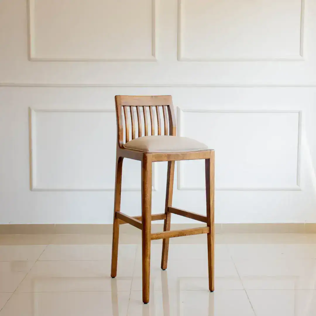 Se destaca por su diseño estilizado y moderno. Fabricada en madera de alta calidad, su respaldo varillado aporta un toque distintivo y elegante. Ideal para barras de cocina o desayunadores, esta banqueta ofrece comodidad y un toque de distinción, adaptándose a espacios modernos y funcionales.
