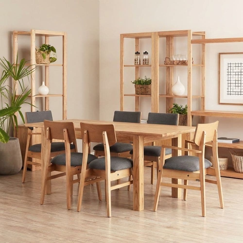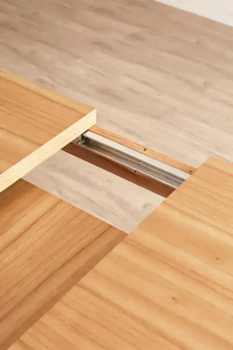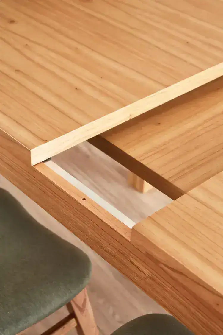 Esta mesa extensible de diseño nórdico destaca por su estética minimalista y funcionalidad. Fabricada en madera maciza, combina líneas simples con una estructura robusta. Su sistema extensible permite pasar de 1,30 m a una longitud mayor, ideal para adaptarse a diferentes necesidades de espacio.