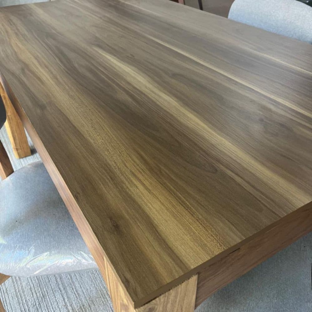 La mesa Vetan se destaca por su diseño contemporáneo y la calidez de la madera natural. Fabricada con estructura sólida y tapa enchapada en madera Petiribí, ofrece una superficie elegante, resistente y de excelente terminación. Sus proporciones equilibradas y líneas limpias la convierten en una pieza versátil, ideal para comedores modernos que buscan funcionalidad sin resignar estética. Disponible en dos medidas, se adapta tanto a espacios medianos como amplios, acompañando reuniones familiares y encuentros sociales con estilo.