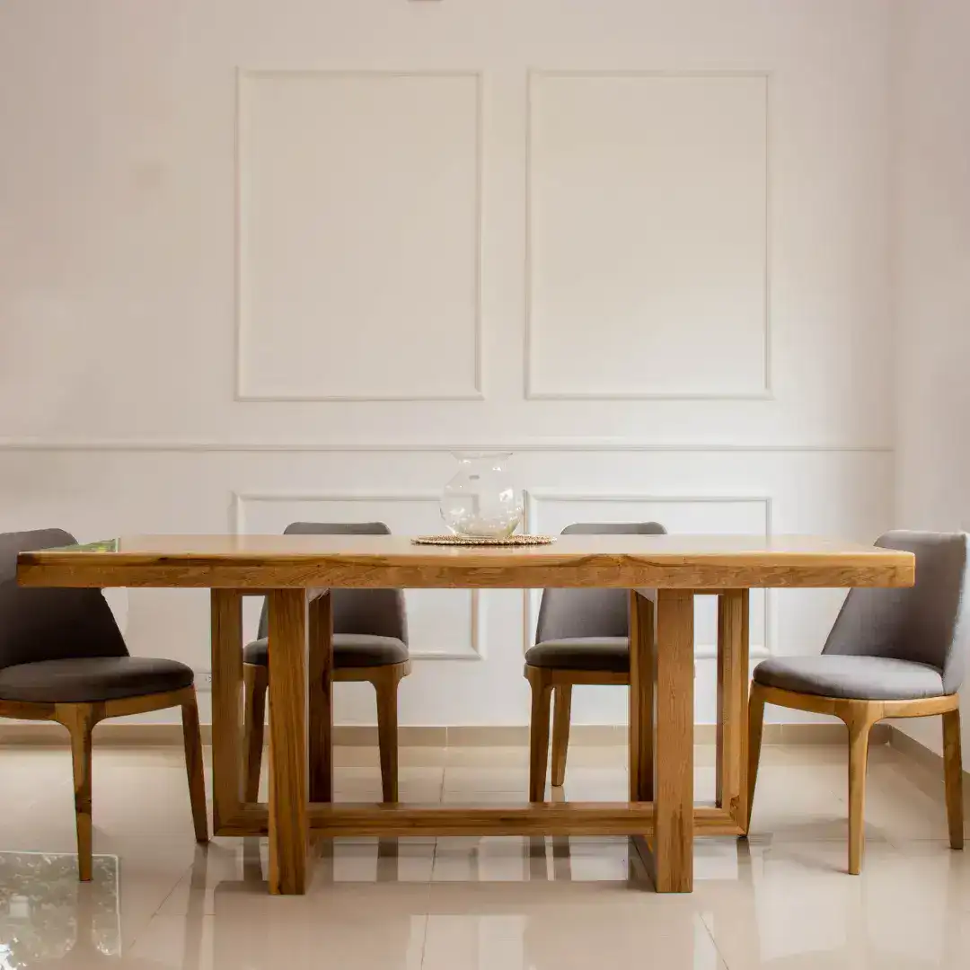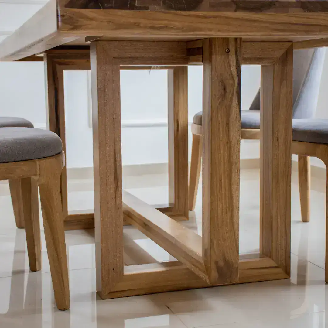 La mesa Naval aporta elegancia atemporal y funcionalidad. Su diseño de líneas rectas y firmes, fabricado con base maciza en Petiribí y tapa maciza completamente 100%, ofrece resistencia y distinción. Ideal para quienes buscan un comedor con estilo y presencia.