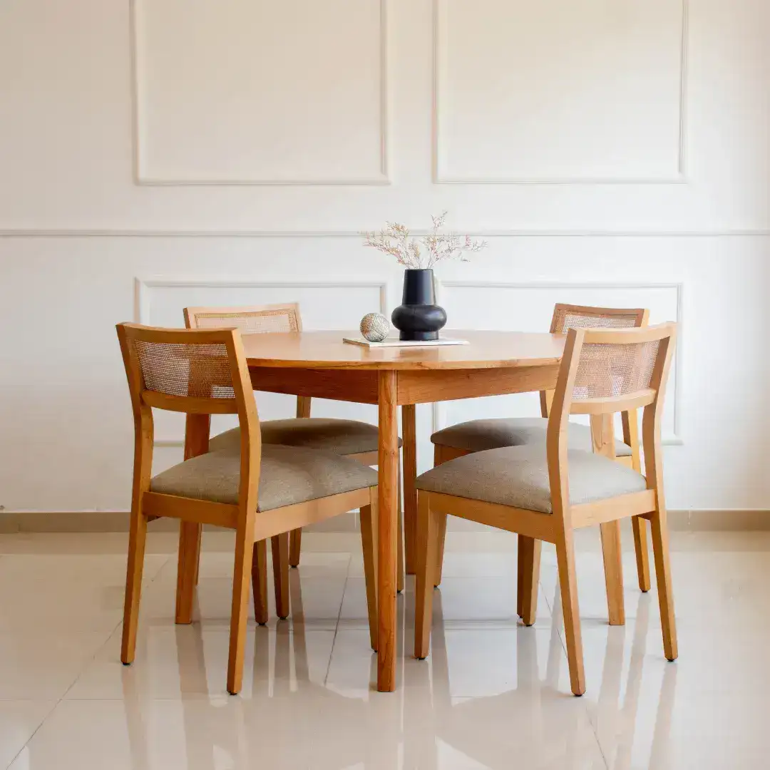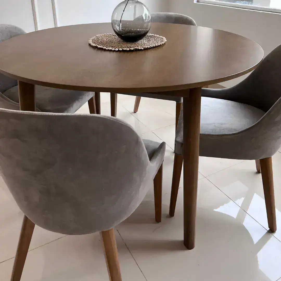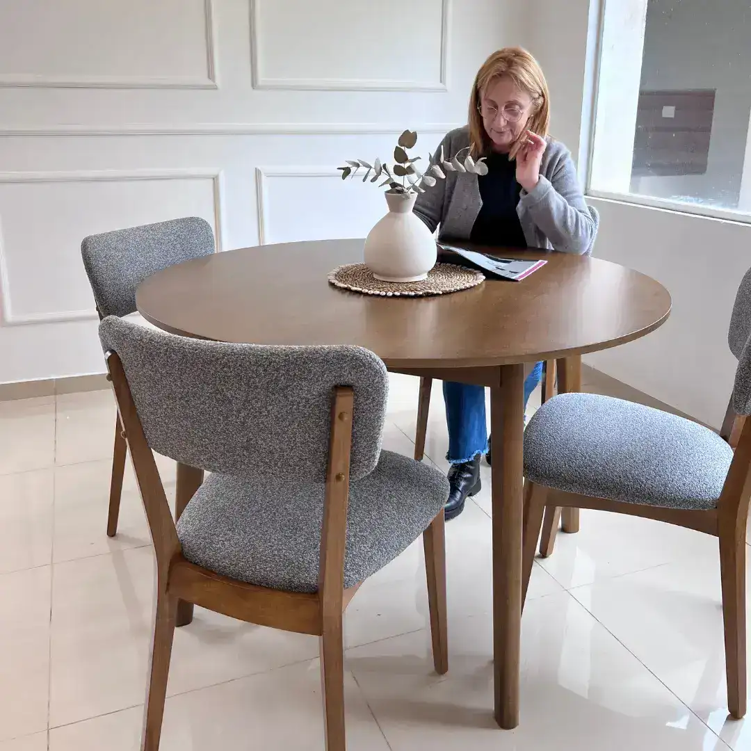 La Mesa Katie combina la esencia del diseño escandinavo con la funcionalidad moderna, creando un punto focal elegante para tu espacio. Su forma redonda fomenta la convivencia y las conversaciones, mientras que sus patas cónicas de madera maciza añaden ese toque característico del estilo nórdico.