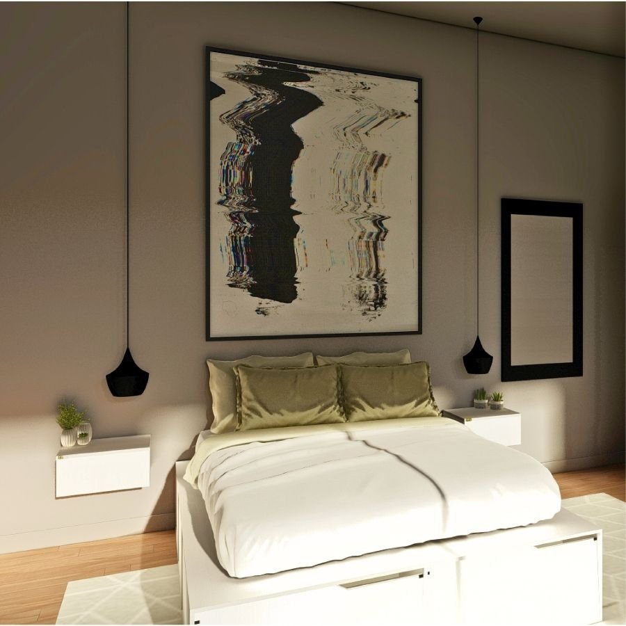 La mesa de luz Loy ofrece un diseño flotante moderno y funcional. Confeccionada en MDP de 15 mm revestido en melamina, cuenta con un cajón amplio con correderas metálicas para un deslizamiento suave. Su estructura sin patas optimiza el espacio y facilita la limpieza. Disponible en varios colores, combina elegancia y practicidad, perfecta para quienes buscan maximizar su espacio sin perder estilo.