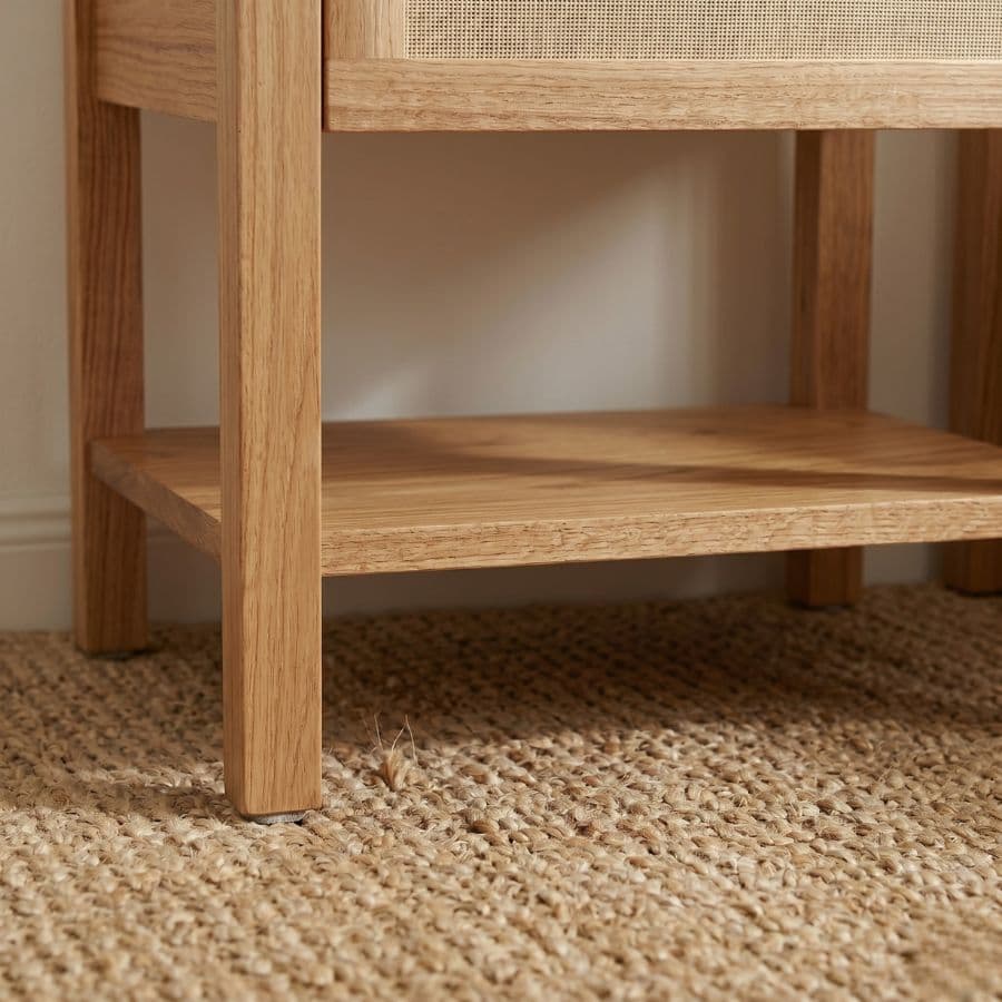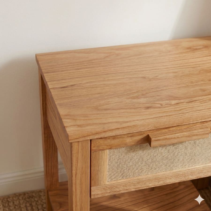 La mesa de luz Fiama combina el encanto del estilo nórdico con un detalle textil que aporta calidez y personalidad. Fabricada en madera Paraíso, su diseño de líneas simples se complementa con terminaciones tipo arpillera, logrando un look natural y acogedor ideal para dormitorios modernos. Cuenta con 1 cajón para guardar objetos de uso diario y 1 estante abierto que suma practicidad para libros, accesorios o decoración, manteniendo todo a mano y ordenado.