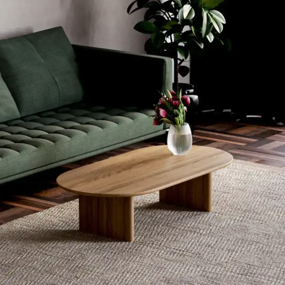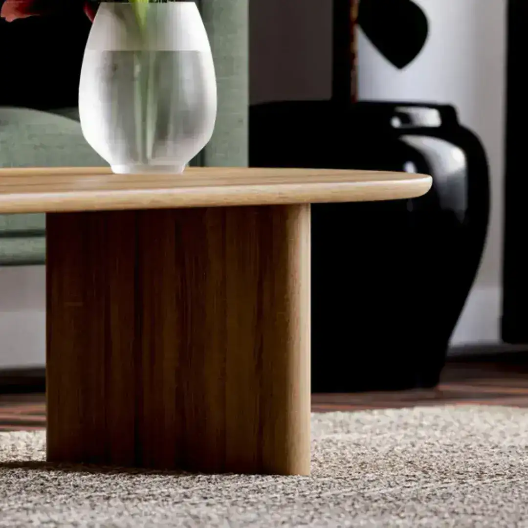 Cada pieza presenta únicas variaciones de tonalidad, marcas orgánicas y delicados patrones de vetas, garantizando la singularidad de tu mesa ratona ovalada.