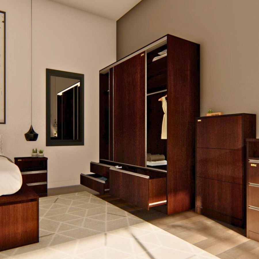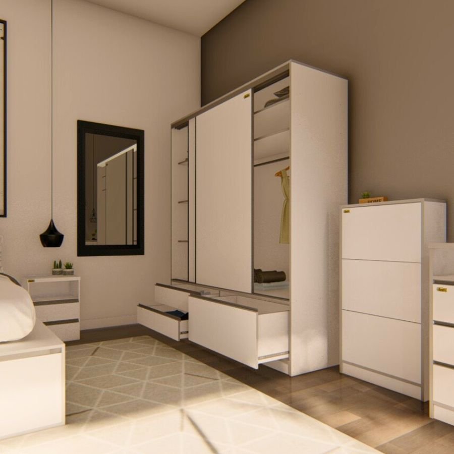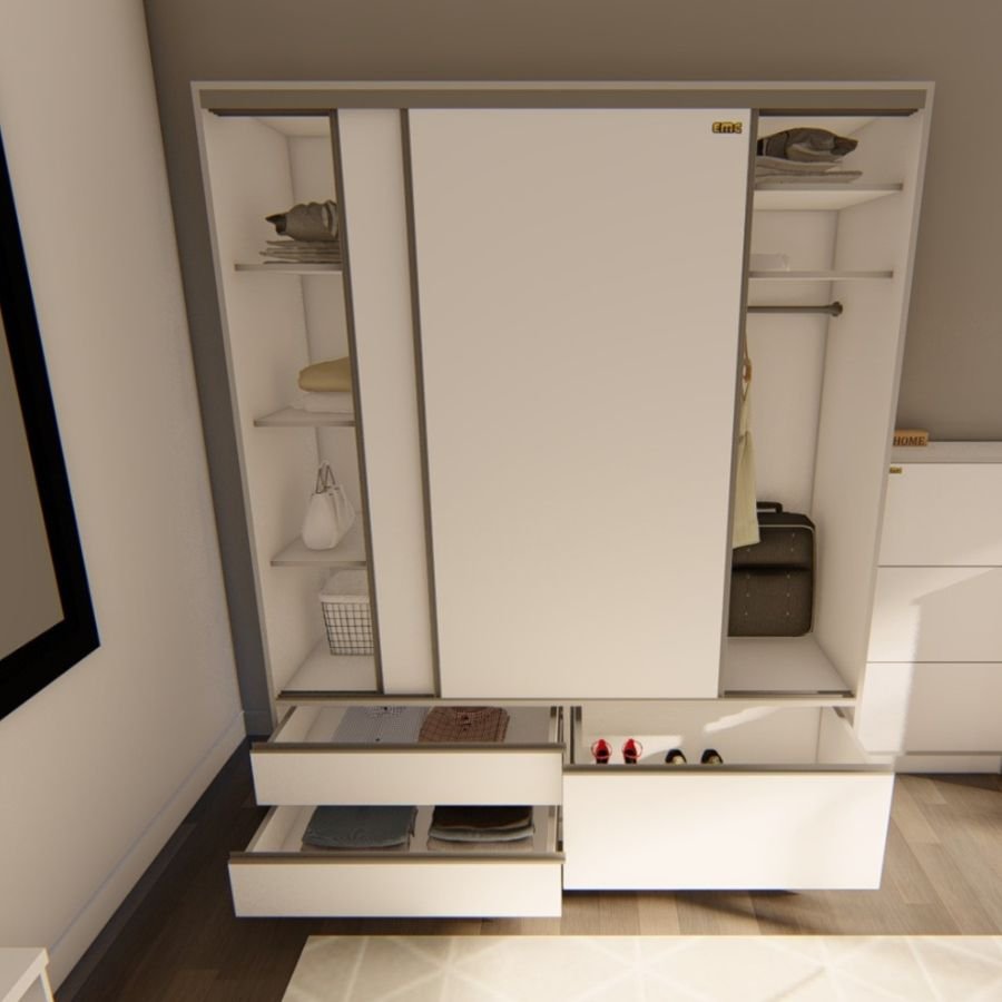 El modelo más grande de la línea Lens, con 2,20 m de ancho y una excelente distribución interna. Incluye 2 cajones frontales exteriores, un zapatero de gran capacidad y estantes interiores. Las puertas corredizas con guías de aluminio anodizado permiten una apertura fluida, ideal para ambientes donde cada centímetro cuenta. Fabricado en melamina de 15 mm, es resistente, funcional y visualmente atractivo.
