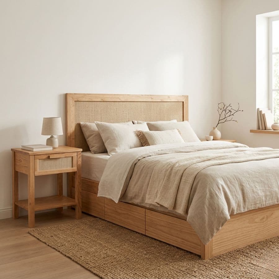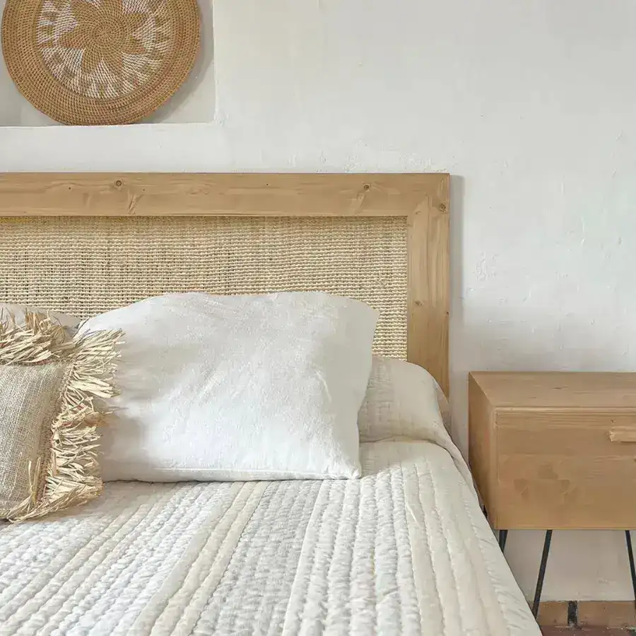 Respaldo Cama Flotante Madera Rústico Arpillera Tom