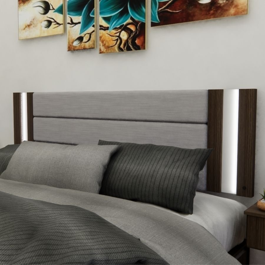 El respaldo Mou combina sofisticación y comodidad con su estructura en melamina texturada y tapizado en lino en tonos claros. Diseñado para brindar apoyo al momento de leer o descansar, su superficie acolchonada ofrece máximo confort. Incorpora luces LED en los laterales para una iluminación tenue ideal para la noche. Compatible con camas de 2 plazas, Queen y King, es una opción elegante y funcional para cualquier dormitorio.