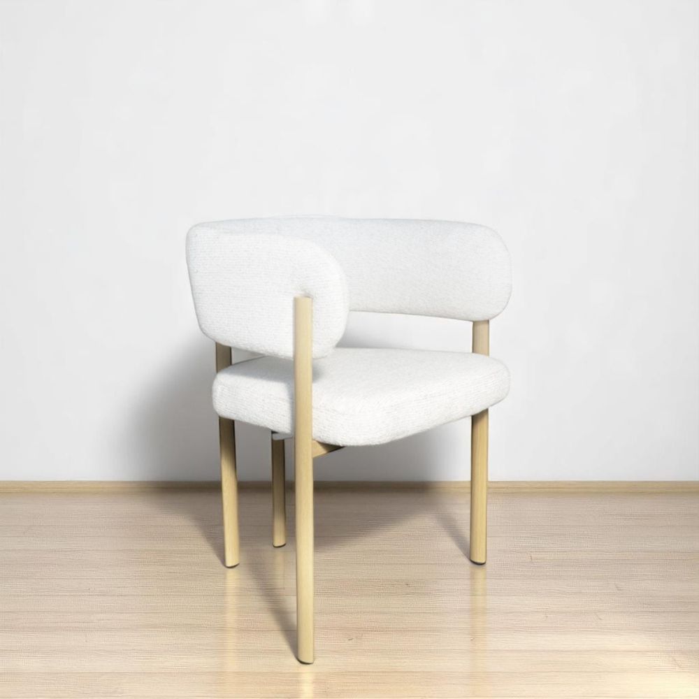 La versión sin apoyabrazos conserva la misma calidad y elegancia que su contraparte, con tapizado en chenille suave y estructura metálica. Ideal para quienes prefieren mayor libertad de movimiento o necesitan más versatilidad en la disposición del mobiliario. Con medidas y alturas similares, brinda el mismo confort con un perfil más compacto.