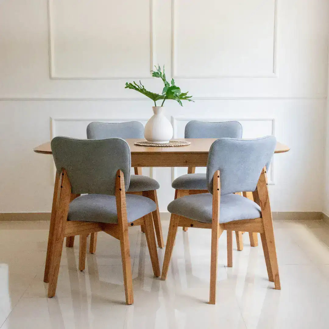 La Silla comedor Nórdica Renata combina líneas rectas con curvas suaves, aportando un toque moderno y acogedor. Fabricada en madera maciza, su asiento y respaldo tapizados ofrecen comodidad y un diseño Escandinavo contemporáneo.