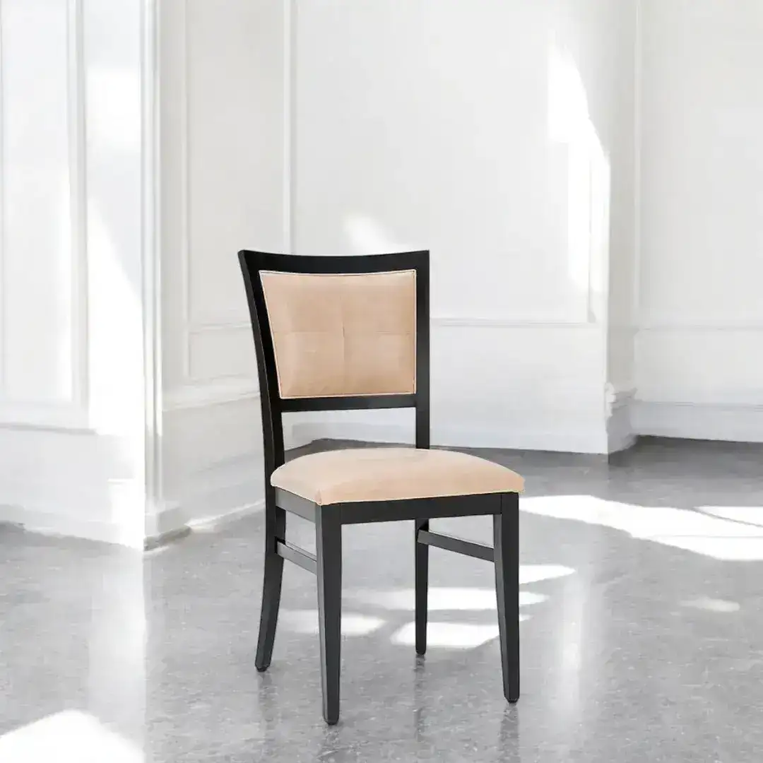 Esta silla de comedor presenta un diseño moderno y elegante, con líneas limpias que aportan sofisticación a cualquier espacio. El asiento y respaldo están tapizados en tela de alta calidad, ofreciendo comodidad y durabilidad. La estructura está fabricada en madera maciza, proporcionando estabilidad y resistencia.