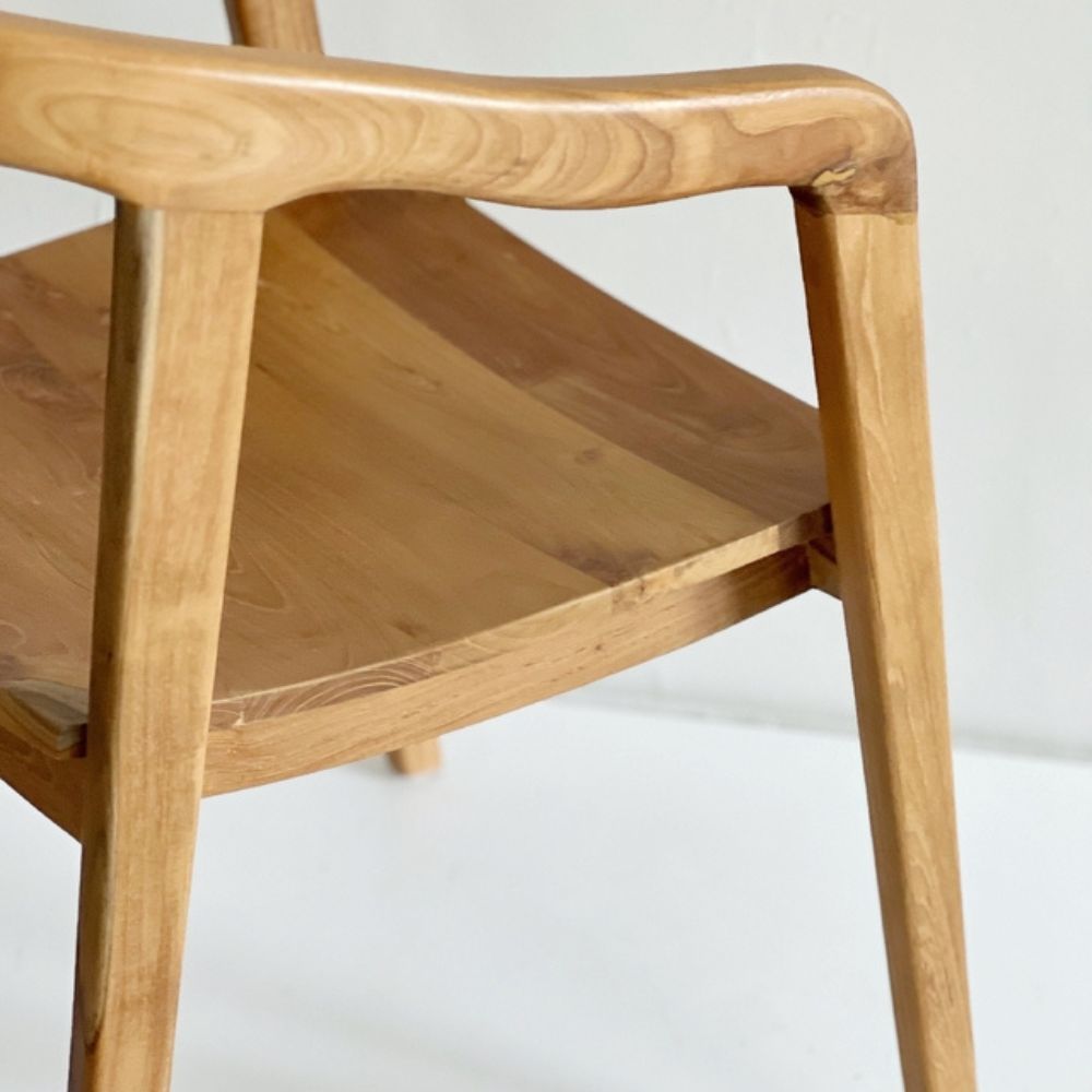 Realizada en madera maciza de teka, esta silla nórdica se destaca por sus apoyabrazos y patas rectangulares, que aportan solidez visual y comodidad estructural. Sus líneas curvas en respaldo y asiento ofrecen ergonomía y elegancia. Mide 76 cm de alto, 49 cm de ancho y 50 cm de profundidad, con una altura de asiento de 44 cm. Apoyabrazos entre 68 y 71 cm. Diseñada artesanalmente para integrarse con estilo en tu comedor.