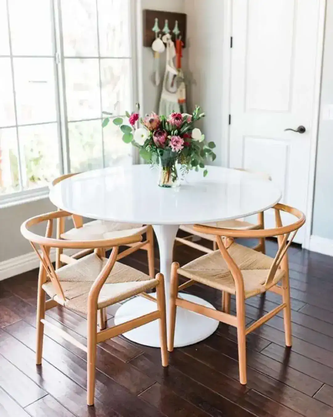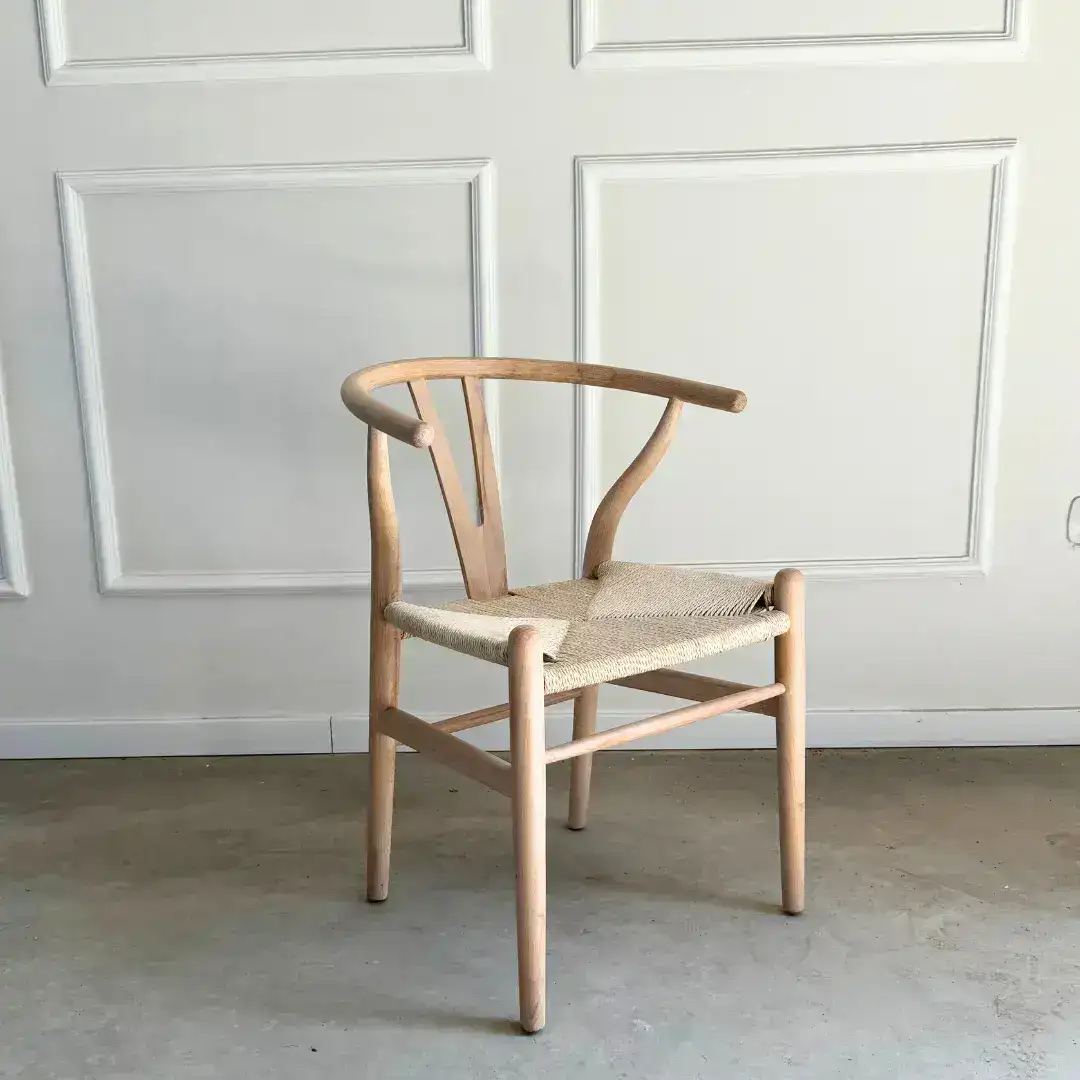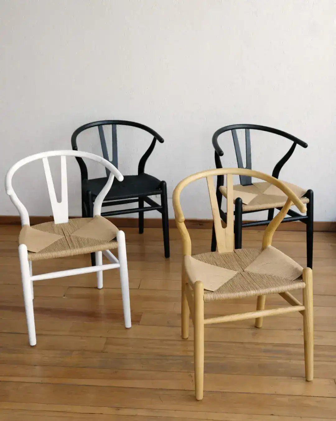 La Silla madera Ratán Nórdica Wishbone, con su estructura de madera de haya, personifica la elegancia nórdica. Su asiento tejido con hilo de ratán natural brinda comodidad única. Con medidas de 48 cm de profundidad, 50 cm de ancho y 78 cm de alto, esta silla es la elección perfecta para un estilo refinado.