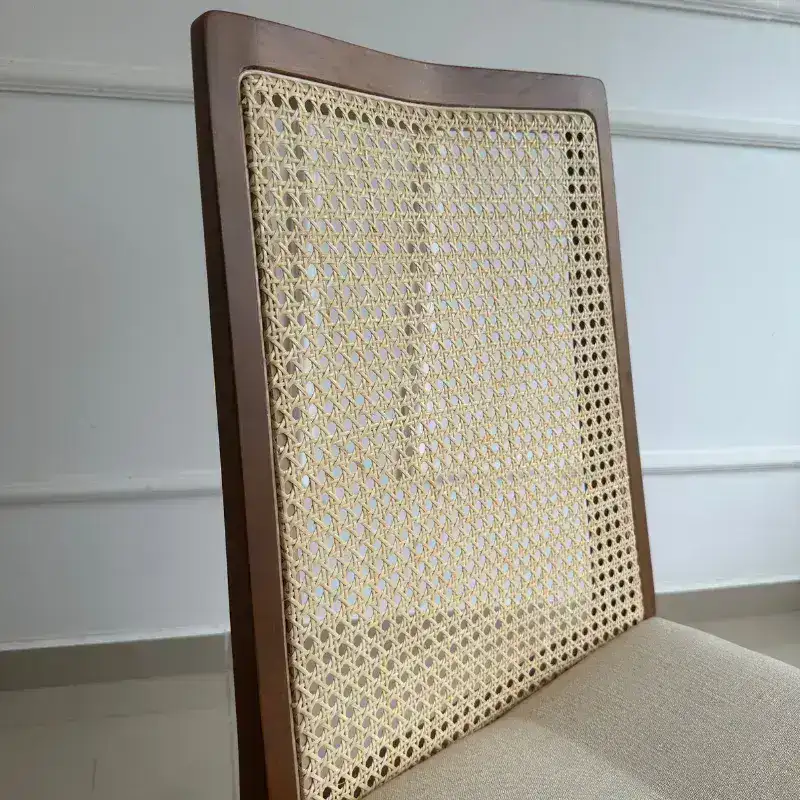 La Silla Amelia combina diseño moderno y artesanía natural, convirtiéndose en una pieza única para cualquier comedor o espacio. Fabricada en madera maciza de Lenga Patagónica, destaca por su respaldo de esterilla tejida natural española, que aporta textura y calidez al diseño. Su estructura cuenta con refuerzos adicionales que garantizan durabilidad y estabilidad.