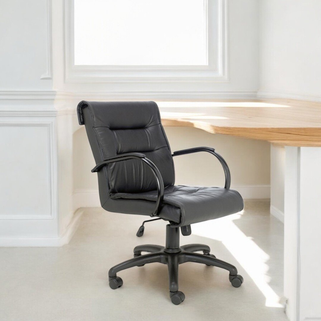 La Silla Ram baja es una opción ergonómica con respaldo medio, ideal para oficinas dinámicas. Tapizada en tela o ecocuero con espuma de alta densidad, ofrece comodidad en largas jornadas. Su sistema basculante con bloqueo en múltiples posiciones y ajuste neumático de altura permite una postura adaptable. Los apoyabrazos elípticos en cromo o negro aportan un diseño sofisticado. Su base cromada y ruedas de elastómero aseguran estabilidad y movilidad silenciosa.