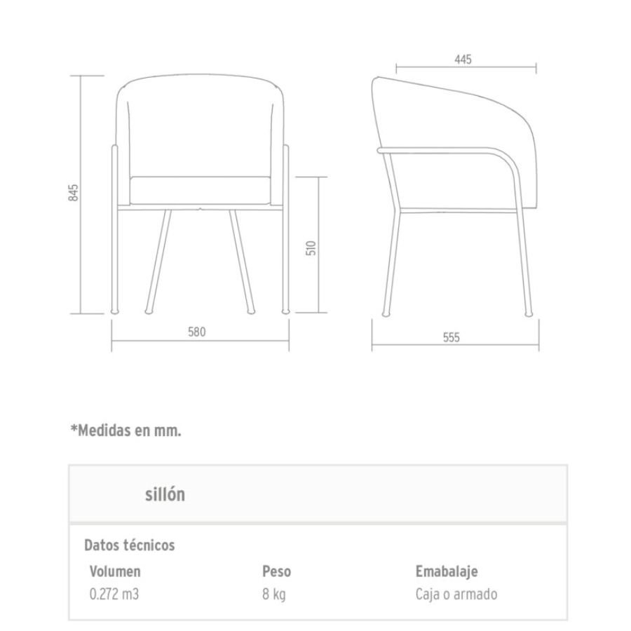 Características Sillón apoyabrazos puntera tapizado Moderno Carra