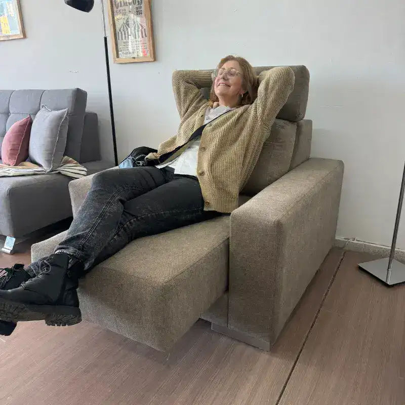 - Asiento: Placa de espuma super soft de 28 kg de densidad, de 15 cm de altura con efecto memoria recobrando siempre forma original. Respaldo con placa de espuma hiper soft de 26 kg de densidad, efecto memoria. Cabezal reclinable.