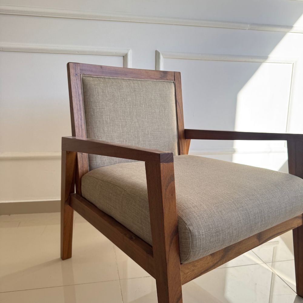 El sillón Michelin destaca por su presencia robusta y estilo rústico refinado. Fabricado en madera Paraíso maciza, ofrece una estructura sólida con gran resistencia. Su asiento y respaldo tapizados a elección brindan máximo confort, mientras que el tono de madera puede adaptarse a tu decoración. Es ideal para livings, recepciones o rincones de lectura con carácter.