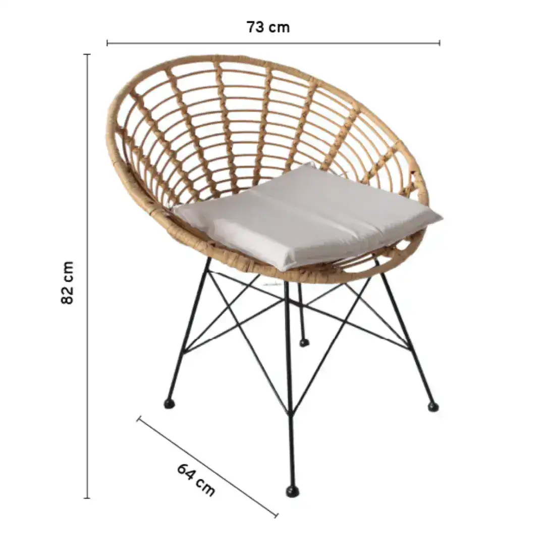 El Sillón Córdoba es una opción ideal para exteriores, combinando diseño y funcionalidad. Su estructura de acero negro, pintada bajo el proceso powder coating, le aporta durabilidad en ambientes exteriores, mientras que el tramado en rattán sintético color beige es resistente a los rayos UV, lo que permite mantener su calidad y color a pesar del clima. Incluye cómodos almohadones en color beige, que complementan el estilo natural y cómodo del sillón.