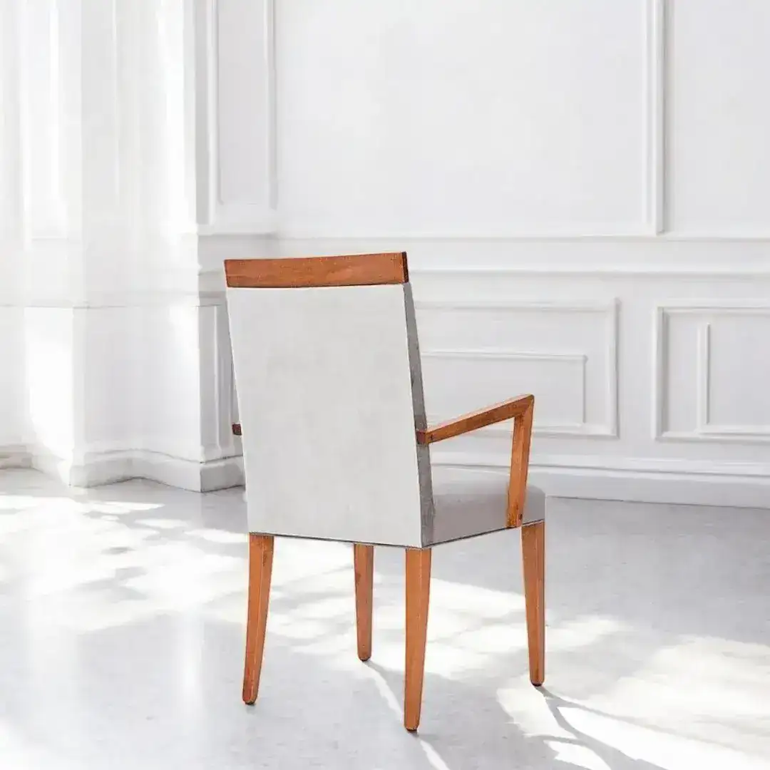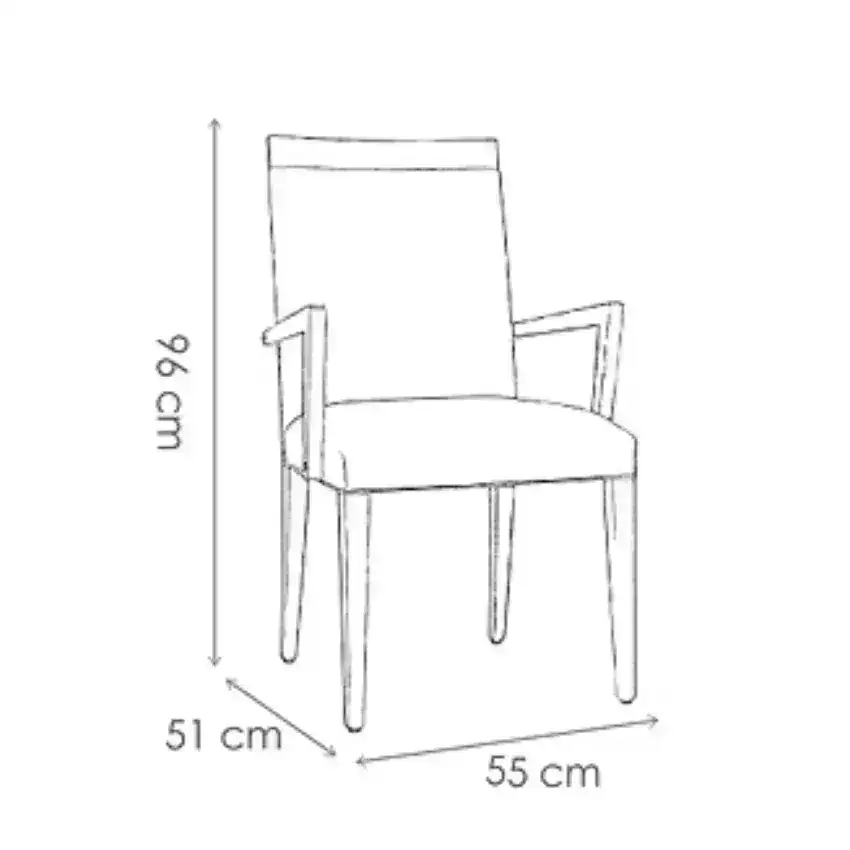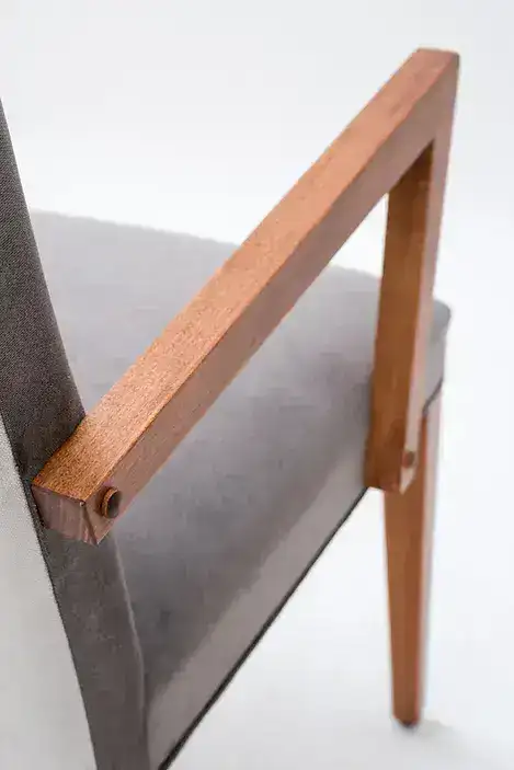 Este sillón de comedor destaca por su diseño elegante y funcional. Fabricado en madera maciza de Guatambú, ofrece una estructura robusta y duradera. Los apoyabrazos proporcionan un confort adicional, haciendo de este sillón una opción ideal para largas sobremesas. Tanto el lustre de la madera como el tapizado del asiento y respaldo son personalizables, permitiendo adaptarlo a diferentes estilos de decoración.