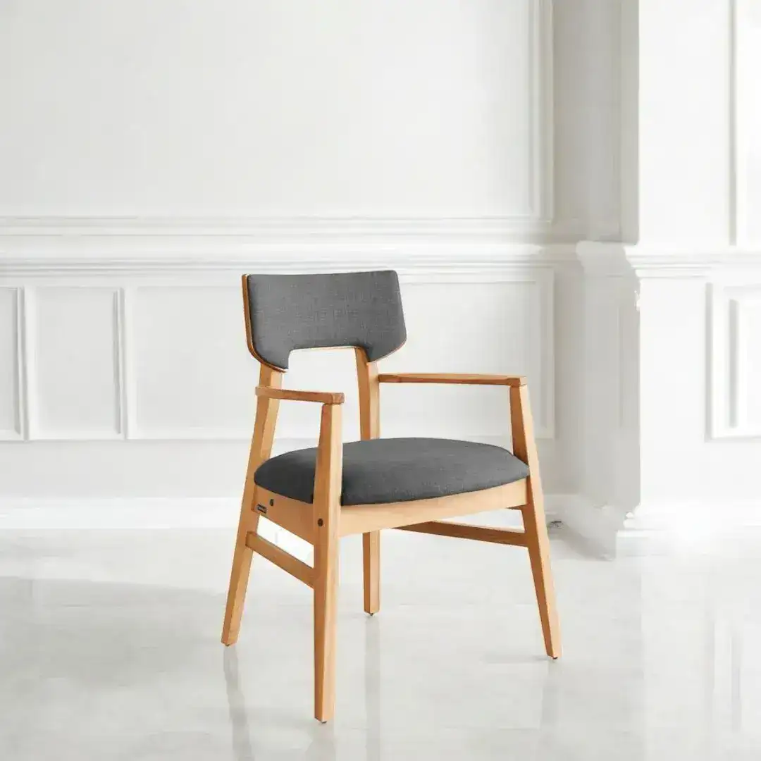 El Sillón comedor Tokio combina líneas rectas con curvas suaves, aportando un toque moderno y acogedor. Fabricada en madera Paraíso macizo, su asiento y respaldo tapizados ofrecen comodidad y un diseño Escandinavo.