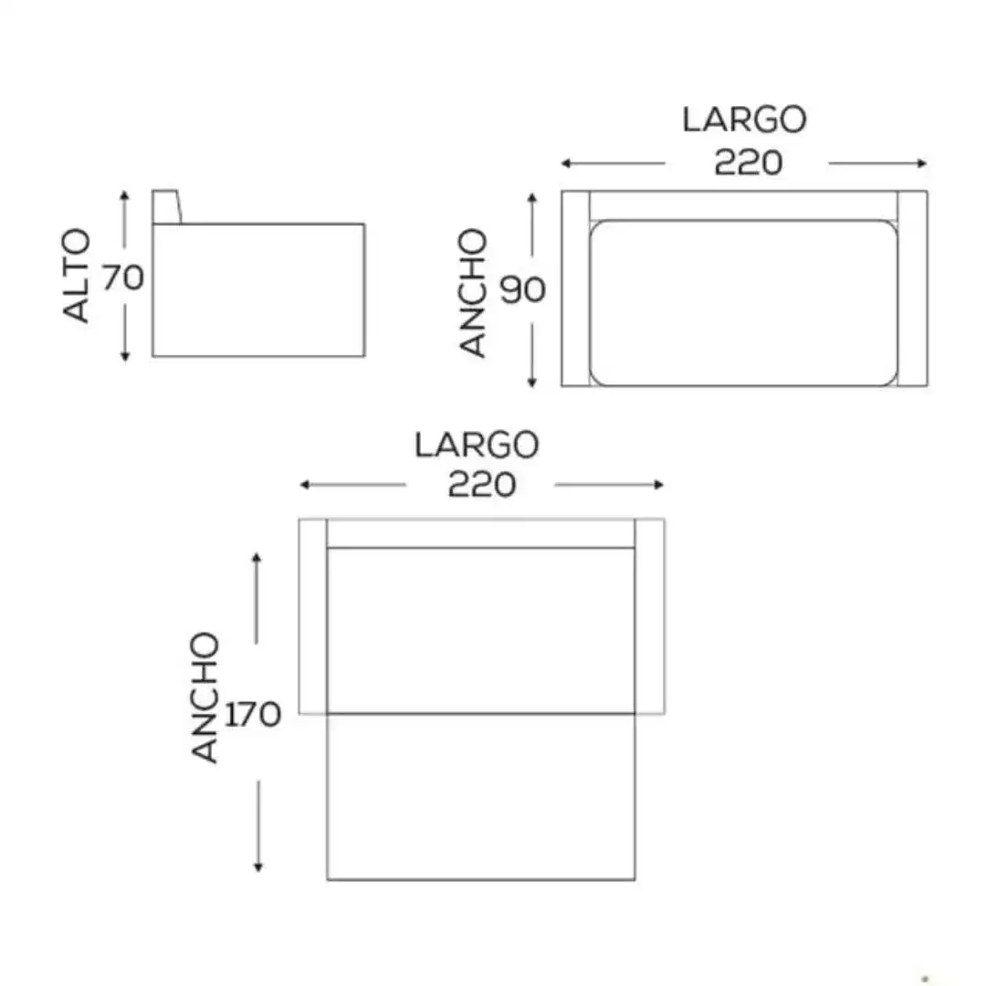 - Estocolmo: Alto: 72 cm. Largo: 220 cm. Profundidad: 105 cm / Malmo Queen: 190 x 160 (Cama)